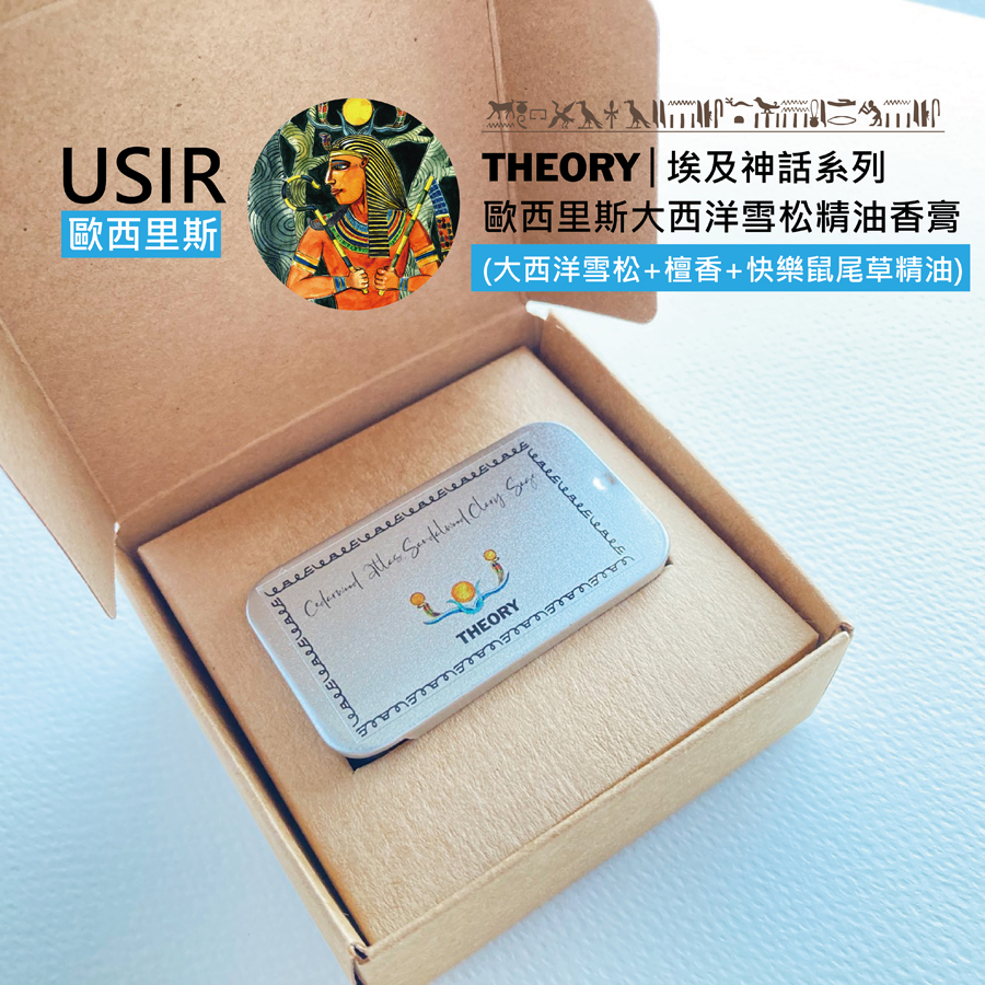 Usir(歐西里斯):冥神、農神、醫神。一手握著代表王權的權杖、一手握著代表農業的連枷。埃及神話裡,巨大雪松包覆裝著歐西里斯的箱子,停在雪松樹上的戴勝鳥引導他的妻子伊西斯找到他。據說尼羅河是從歐西里斯身上流出來的,因此泛濫的河水裡充滿了伊西斯的淚水。
